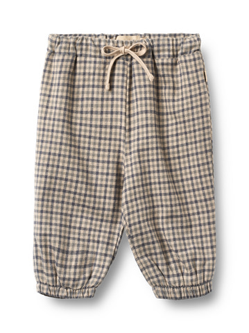 Løstsiddende bukser med tern i blødt vævet økologisk bomuld til din baby. Wheat's bukser er et must have i din babys garderobe. Med en praktisk elastik i taljen og løse pasform er disse perfekte til tumletid og leg på gulv. Den afslappede pasform gør bukserne behagelige for din baby at have på og kan nemt styles med en af vores t-shirts, bodies eller strik til hverdag.