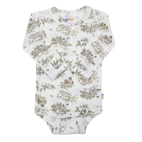 Langærmet body med praktiske trykknapper på den ene skulder og mellem benene for nem og bekvem påklædning. Fremstillet i en ekstra fin uldkvalitet med silke, som føles utroligt blød mod huden og har et let, elegant skær. Det søde print tilføjer et charmerende og legende udtryk.