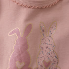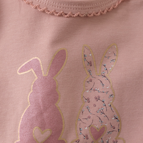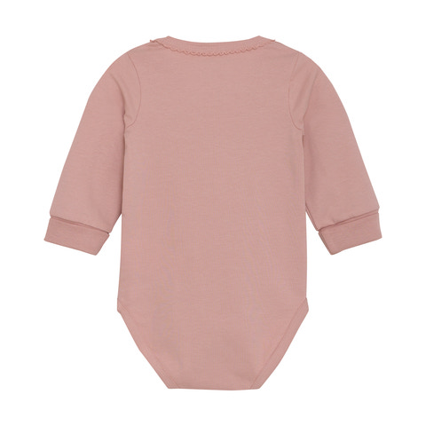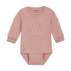 Langærmet body fra Minymo med et sødt print. Bodyen er fremstillet i en blød bomuldsblanding, der føles behagelig og skånsom mod barnets hud. Den er designet med trykknapper mellem benene, placeret i to forskellige positioner, så bodyen kan justeres og vokse med barnet. Et lille Minymo-logo ved benet fuldender det fine udtryk.
