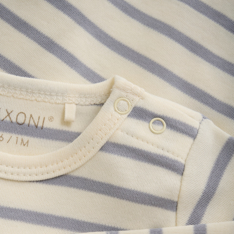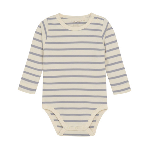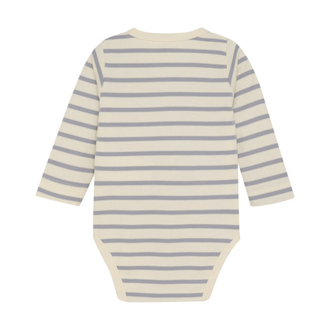 Langærmet body med stilfuldt stribet mønster. Komfortabel og perfekt til daglig brug. Trykknap ved skulder, for letter at få af og på. Ligeledes er der trykknapper forneden til nemt bleskift.