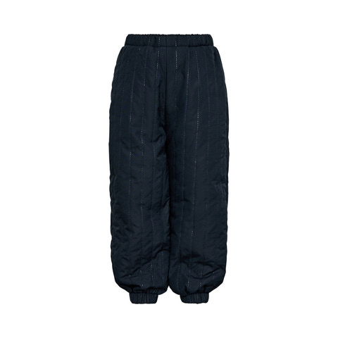 Bukser i navy med synlige syninger og elastik i taljen og benene