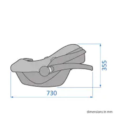 Vægt: 3,2 kg. Udvendige mål: L: 66 x B: 44 x H 55,5 cm. Materiale: Metal l, plast, polypropylen Betræk materiale: polyester Betrækket kan tages af og vaskes i vaskemaskinen Kan monteres med bilens sele, eller tilkøbt base Fastgøres med et enkelt klik på Cabriofix i-Size ISOFIX basen (tilkøb) Stor kaleche der beskytter for solen Baby indlæg til nyfødte Komfortabelt sæde med ekstra polstring i-Size godkendelsen R129, Integreret 3-punkts-sele
