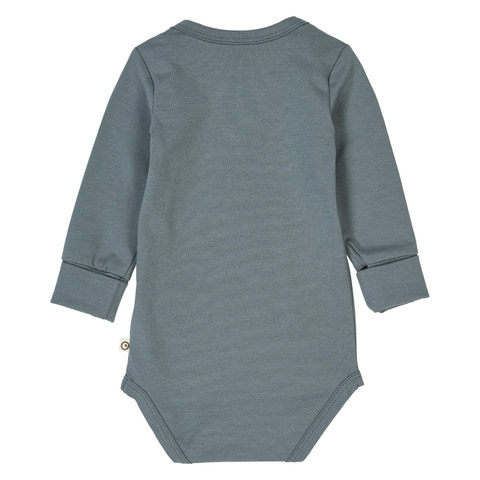 Denne lækre langærmede body er lavet i en blød og strækbar single jersey med 95 % økologisk bomuld og 5 % elastan, hvilket sikrer en optimal pasform og lang holdbarhed. Bodyen har en praktisk amerikansk lukning ved halsen, som gør det nemt at tage den på nedefra - en mere behagelig løsning for både barn og forælder, da man undgår at trække den over hovedet.