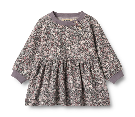 Langærmet jerseykjole i blødt økologisk bomuld til din baby. Wheat's søde kjole har en løs pasform, som gør den let og behagelig for dit barn at have på. Kjolen har en flatterende skæring med rynk, der giver volumen i skørtet. Kjolen er perfekt til efterårs- og vintermånederne og kan nemt styles med et par leggings og en langærmet T-shirt under, samt en cardigan eller striktrøje udover.