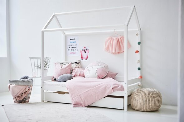 kundeservice@babysam.dkHussengen fra Hoppekids er en hyggelig lille seng med lækre detaljer og et rent, nordisk enkelt design. Størrelsen på 70x160 cm. fungerer som en sikker base for det mindre barn og som et skridt mellem babysengen og voksensengen. Denne seng er ligesom de øvrige senge fra Hoppekids Svanemærket og overfladebehandlet med vandbaseret lak, uden skidt kemi. Med dette hussengstekstil kan du nemt skabe en hyggelig og tryg atmosfære på børneværelset og i sengen. Forhænget skaber en huleagtig stemning i sengen, uden at lukke helt af for resten af værelset. Pynt eventuelt sengen med lyskæder og hyggelige puder.