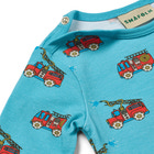 Heldragt til baby med brandbil, produceret i en økologisk og strækbar bomuldsjersey. Denne heldragt er OEKO-TEX Standard 100® certificeret, hvilket betyder at dragten er produceret og testet for skadelige stoffer, så du kan passe på dit barns hud og helbred.