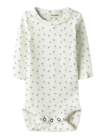 kundeservice@babysam.dkGayo Sag Langærmet Body fra Lil' Atelier i farven Coconut er et skønt valg til de mindste. Bodyen er fremstillet i en blød og strækbar kvalitet, der sikrer komfort hele dagen. Det fine blomsterprint giver et sødt og klassisk udtryk, mens de lange ærmer beskytter mod kulde og gør bodyen ideel til både hverdag og fest. Med trykknapper i bunden er det nemt og hurtigt at skifte ble, og den praktiske pasform sikrer, at bodyen sidder godt uden at stramme. Lil' Atelier er kendt for deres fokus på kvalitet og tidløst design, hvilket gør denne body til et sikkert valg i garderoben.