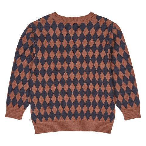 Denne lækre striktrøje er fremstillet i en blød jacquardstrik med et smukt harlekinmønster - kendetegnet ved sine fine, geometriske ruder, der giver et klassisk og raffineret udtryk. Trøjen er både behagelig og stilfuld, perfekt til både hverdag og særlige lejligheder.