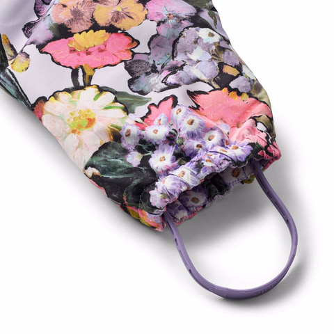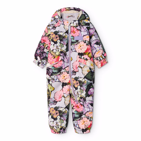 Vandafvisende flyverdragt til de mindste, fremstillet i genanvendt nylon. Dragten har en aftagelig, foret hætte og en ekstra lang lynlås på fronten, der gør den nem at tage på og af. Elastikken i lænden samt ved ærme- og ben afslutninger sørger for, at sne, regn og vind holdes ude, samtidig med at luffer og støvler bliver på plads. Flyverdragten er udstyret med refleksbånd på lommerne og ærmerne, som sikrer ekstra synlighed i trafikken. Derudover har dragten fleecefor ved numse og ryg samt en indvendig justerbar elastik i taljen, der giver en tæt og behagelig pasform omkring kroppen.