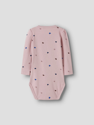 Friske dit barns garderobe op med bløde og praktiske bodysuits, der er perfekte til brug året rundt. Ribstrikket har et lodret stribet mønster og god elasticitet for en behagelig pasform og et tidløst look. - Produkttype: Body - Halsudskæring: Rund halsudskæring - Ærme: Lange ærmer (L/S) med puffer - Lukning: Trykknapper - Tryk: Tryk over hele produktet