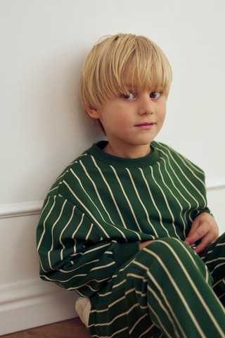 kundeservice@babysam.dkEn smart og komfortabel sweattrøje i en flot grøn farve med lodrette cremefarvede striber, der giver et moderne og legende udtryk. Trøjen er lavet i en let og strækbar sweatkvalitet med børstet inderside, som føles ekstra blød og behagelig mod huden - perfekt til både leg og afslapning.