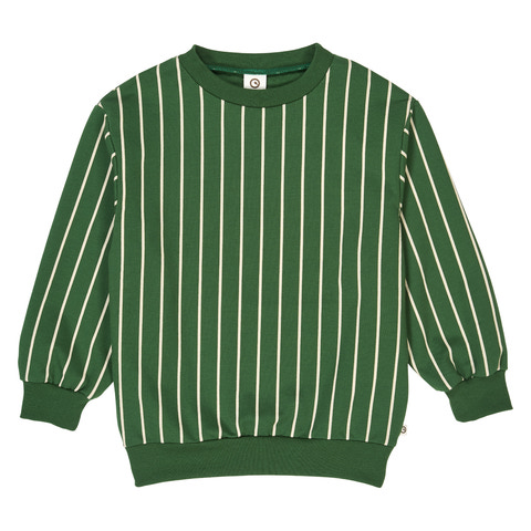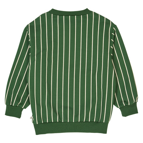 En smart og komfortabel sweattrøje i en flot grøn farve med lodrette cremefarvede striber, der giver et moderne og legende udtryk. Trøjen er lavet i en let og strækbar sweatkvalitet med børstet inderside, som føles ekstra blød og behagelig mod huden - perfekt til både leg og afslapning.