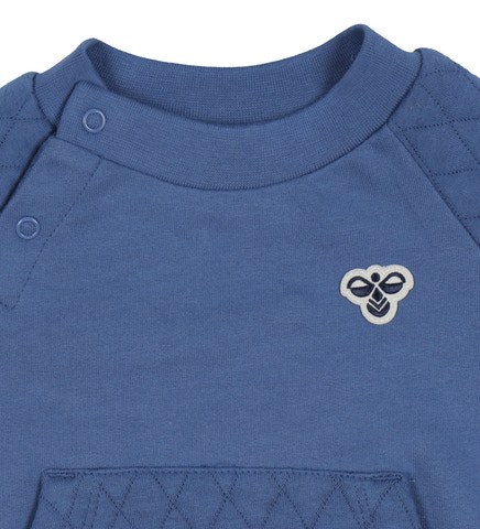 Quilt Poc Sweatshirt fra hummel i farven Dutch blue er en blød og behagelig trøje, der kombinerer funktionalitet med et moderne design. Den quiltede struktur giver ekstra varme og komfort, mens den praktiske kængurulomme på fronten er perfekt til små hænder eller opbevaring af småting. Trykknapperne ved skulderen gør det nemt at tage trøjen af og på, hvilket er ideelt til de mindste. Ribkanter ved ærmer og bund sikrer en god og behagelig pasform, og det klassiske hummel-logo på brystet fuldender det sporty look. Sweatshirten er velegnet til både hverdag og leg, og den flotte blå farve passer til det meste.