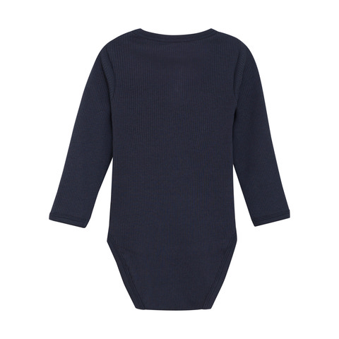 kundeservice@babysam.dkSød ribstrikket body med lange ærmer fra Minymo. Bodyen er lavet i en blød og behagelig kvalitet, der føles skånsom mod barnets hud. Den har praktiske trykknapper mellem benene, som gør den nem at tage af og på.