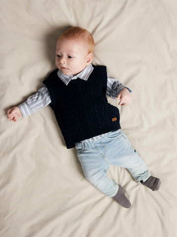 kundeservice@babysam.dkSæt det perfekte outfit sammen til dit barn med kvalitetsstilarter til hverdagsbrug, og skab et behageligt og trendy look. Kabelstrik er kendetegnet ved rækker, der krydser hinanden, hvilket giver en blød fornemmelse og et hyggeligt look.