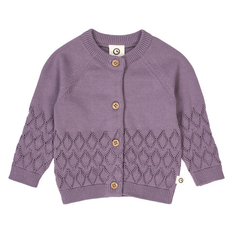 Denne smukke og feminine cardigan er strikket i et delikat mønster inspireret af naturens bløde former og blade. Den åbnes fortil med knapper og er perfekt som et stilfuldt lag til både hverdag og særlige lejligheder.