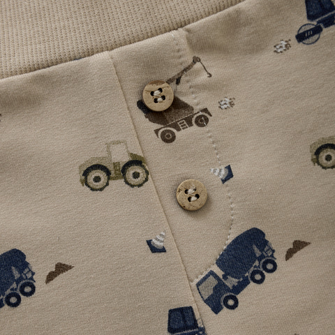 Det fine all-over print med køretøjer og de to pynteknapper foran giver bukserne et stilfuldt og legende udtryk, der passer perfekt til små eventyrere. Fremstillet i en blød viskoseblanding, der føles behagelig mod huden.