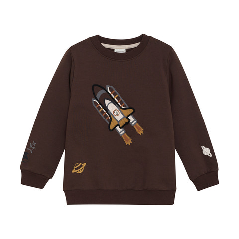 Sweatshirt med et sejt rumskibsmotiv på forsiden og ribkanter ved hals, ærmer og bund, der sikrer en god pasform. Perfekt til små eventyrere med stjerner i øjnene.