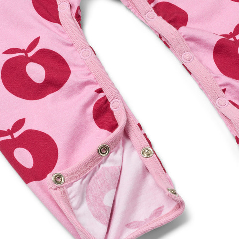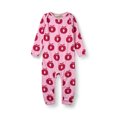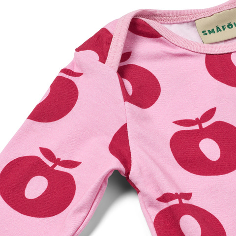 kundeservice@babysam.dkLangærmet baby body med æbler produceret i en økologisk og strækbar bomuldsjersey. Denne body er OEKO-TEX Standard 100® certificeret, hvilket betyder at denne body er produceret og testet for skadelige stoffer, så du kan passe på dit barns hud og helbred.Denne body har en normal pasform med kuvertlukning og trykknapper, samt ribkant i hals og ærmer. Småfolks body'er er designet i Danmark med tanke på at kunne holde til utallige eventyrer og leg, og bevare form og farver selv efter gentagen brug. Pige model på billedet er 83 cm høj og har størrelse 80 cm på. Drenge model på billedet er 81 cm høj og har størrelse 80 cm på.