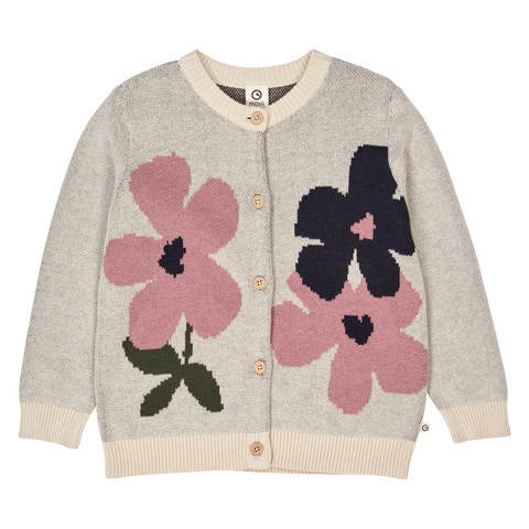 kundeservice@babysam.dkDenne smukke cardigan er strikket i blød bomuld og prydet med store, broderede blomster på brystet, som giver et feminint og dekorativt udtryk. Den lukkes foran med knapper og fungerer perfekt som et ekstra lag på kølige dage eller som en let overdel, når vejret er mildt.